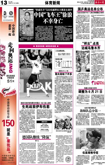 海南日报 体育新闻 013 2008-06-181 2008年06月18日 星期三