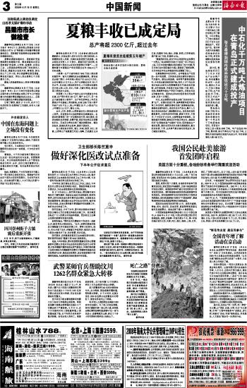 海南日报 中国新闻 003 2008-06-181 2008年06月18日 星期三