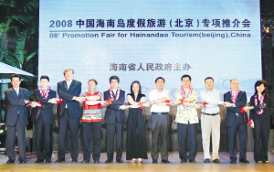 | 6月18日,由省人民政府主办、省旅游局承办的2008中国海南岛度假旅游专项推介会在北京中国大饭店举行。会上,省旅游局联合海航、上航等多家航空公司与日本HIS、JTB、中旅途易等多家旅行社,成立了海南岛度假旅游发展联盟,各大旅游企业誓言将合力推广海南旅游。 本报特派记者 王凯 摄 |