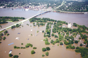 6月18日,美国密西西比河水位上涨,至少又有12处防洪堤发生决口,大量农田被淹,艾奥瓦州伯灵顿的房屋被洪水淹没,经济损失已达十多亿美元。 新华社/路透