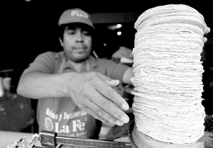 6月18日,一名摊贩在墨西哥城一市场上卖传统玉米粉圆饼。墨西哥食品加工企业18日向政府承诺,冻结150多种食品价格6个月,以帮助中低收入家庭应对物价上涨压力。 新华社/法新
