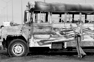 6月18日,巴拿马城数百名公车司机开始为期两天的罢工,并上街游行甚至烧毁公车,以抗议油价上涨以及政府近期对公交系统所做的调整。 新华社发