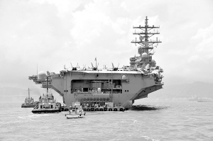 美国核动力航母 “里根”号经停香港 6月19日,美国核动力航母“里根”号停泊在香港水域。 当日,美国核动力航母“里根”号及五艘护卫舰只抵达香港,进行数日的舰只补给和人员休整。 新华社记者 陈济朋 摄