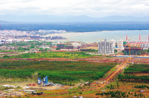 | 打造洋浦海口一小时交通圈,对正处于开发中的洋浦将影响深远。图为洋浦保税港区俯瞰。