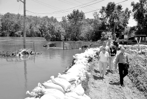 19日,美国总统布什在艾奥瓦州艾奥瓦市视察一个防洪堤坝。 新华社/法新