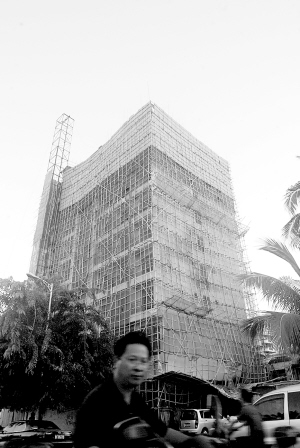 | 在三亚市春园路,报批4层的楼房,却在周围市民的举报中,长高到10层半。