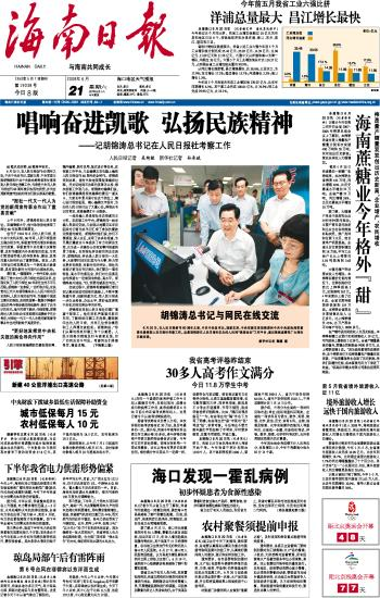 海南日报 头版 001 2008-06-211 2008年06月21日 星期六