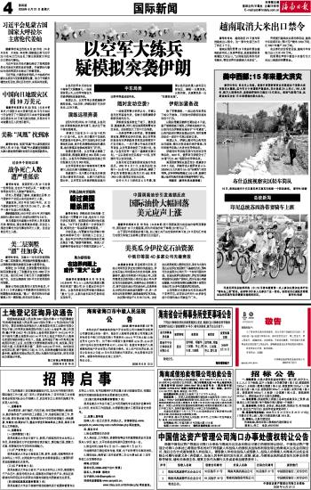 海南日报 国际新闻 004 2008-06-211 2008年06月21日 星期六