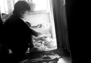 漆黑的出租屋里,电视机画面是古装戏,充斥房间的却是流行音乐。这是一台故障电视机,只能播放画面。王能(见上图,李英挺摄)就在出租屋里微弱残喘,期盼着奇迹能够降临……