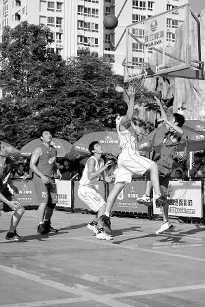 | 珠江啤酒篮球争霸赛海南赛区在激烈争夺。 小马摄 |