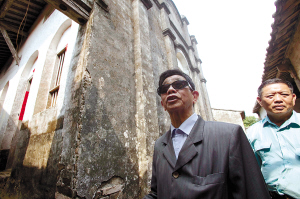| 在王映斗故居前,王映斗后人正在讲述父子进士的故事。