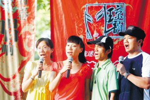 本报讯 (记者陈德雄)6月22日下午,海口市人民公园的林荫里,一个临时搭设的演唱台前,十多个青年男女轮番上台演唱各自喜欢和熟悉的琼剧唱段。他们的演唱吸引着过往路人和前来公园游览和锻炼身体的海口市民。他们是来自琼韵戏迷剧社的琼剧戏迷。