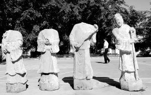 | 图为从西沙水下打捞出来的石雕。这批文物将作为展示南海水下文物的重要组成部分,安放在新落成的省博物馆。 本报记者 宋国强 摄 |