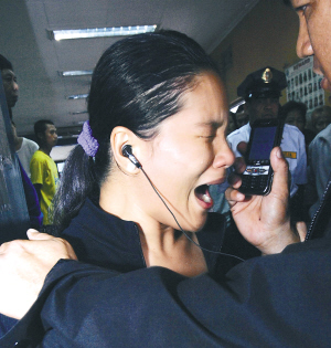 六月二十三日,在菲律宾首都马尼拉,有七名亲属在沉没的“群星公主”号渡轮上的海迪·劳雷尔在渡轮所属公司内向采访她的记者求助。 新华社\法新
