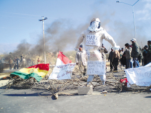 6月22日,在玻利维亚塔里哈省,反对自治公投的民众封锁道路以示抗议。当天,塔里哈省举行省内自治公投。据悉,玻利维亚中央政府和全国选举法庭均已宣布此次自治公投为非法。 新华社发