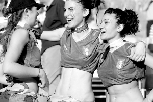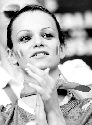 ↑6月22日,三位意大利队美女球迷在为意大利队助威。 新华社发