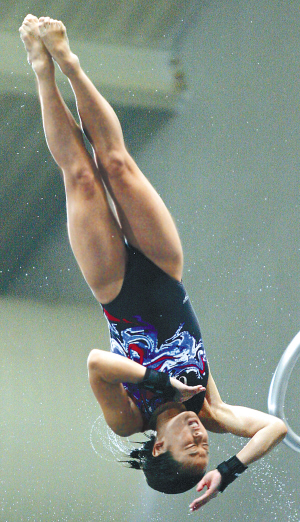 6月22日,美国选手黑莉在印第安纳波利斯举行的美国奥运跳水选拔赛女子10米跳台决赛中角逐。获得这次选拔赛各个单项第一名的队员将自动获得代表美国参加北京奥运会的资格。 新华社发