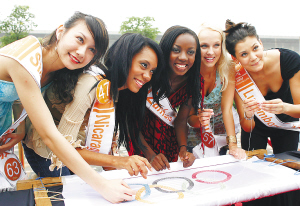 五大洲佳丽祝福奥运