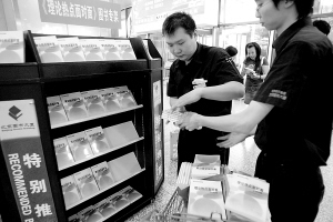 | 6月23日,两名北京西单图书大厦工作人员将《理论热点面对面·2008》摆放在书架上。 新华社记者 王永卓 摄 |