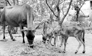 江西一黄牛生下“三胞胎”
