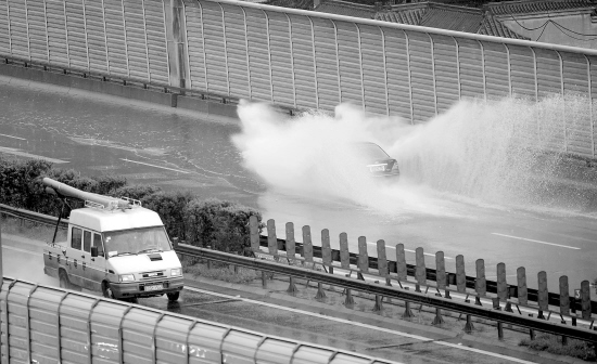 6月23日,在北京的五环路上,车辆驶过雨水浸没的路面。当日,北京局部地区出现暴雨。目前中国已经全面进入主汛期,全国各地都在加紧进行防汛抗洪的准备。 新华社记者 武巍 摄