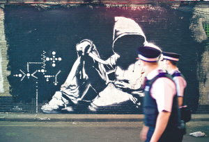 地点:伦敦滑铁卢车站 6月23日,在英国伦敦滑铁卢车站附近的一处隧道内,两名警察观看著名涂鸦艺术家“本克西”的作品。伦敦南部这处废弃的隧道内近日举办涂鸦展,多位成名涂鸦艺术家参展,著名涂鸦艺术家“本克西”的数幅作品也在其中。 新华社/路透