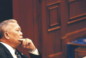 | 6月24日,泰国总理沙马在国会大厦听取反对党陈词。 新华社发 |