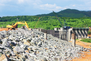 | 戈枕枢纽工程施工进展顺利,大坝主体已现雏形。 本报记者 张杰 摄 |