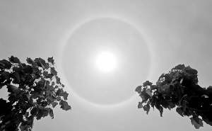 6月24日13时左右,银川市上空出现日晕,吸引众多路人驻足观看。 新华社记者 王鹏 摄