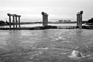 记者在嘉积大桥附近看到,当地公安等部门正在积极组织对溺水工人的打捞。当地群众说,嘉积大桥这一带河水湍急且水较深(见上图,蒙钟德摄)。