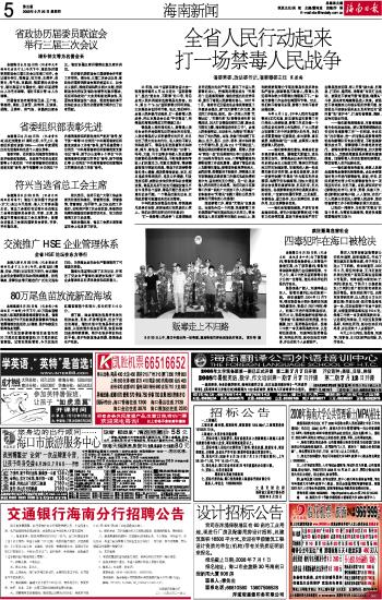 海南日报 海南新闻 005 2008-06-261 2008年06月26日 星期四
