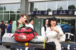 | 6月26日,美国有线电视新闻网(CNN)的记者抵达朝鲜首都平壤顺安国际机场。当天,来自中国、美国、韩国、日本、俄罗斯五国的电视记者乘坐从北京出发的高丽航空班机抵达平壤。他们将对朝鲜27日炸毁宁边地区核设施冷却塔进行报道。 新华社记者高浩荣摄 |
