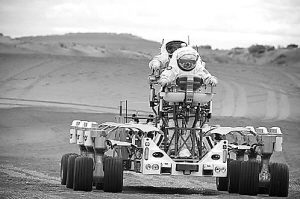 本报讯 2008年6月,美国宇航局在华盛顿摩塞斯莱克(Moses Lake)沙漠地区对最新月球车“战车”(Chariot)进行测试。
