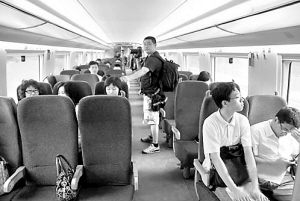 | 城际高速列车的二等车厢定员也仅为六十八人,所以空间比较大,乘坐的舒适度很高。 |