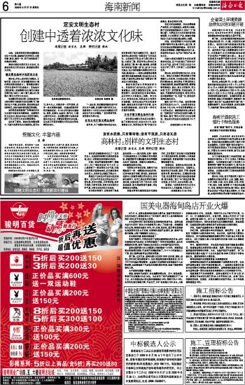 日前,记者来到定安县龙湖镇高林村这个古村落,踏着巷内的青砖石,村里安静、整洁。微风一吹,即可闻到熟透了的黄皮的香味。 高林村是定安县历史文化名村,也是定安县的文明生态村,渗透着浓厚的文化味。 建文明生态村不忘历史文化 据介绍,历史上定安县才俊辈出,文物丰富,古迹众多。有龙湖镇高林村(清代探花郎张岳崧故乡)、雷鸣镇龙梅村(明代礼部尚书王弘诲故乡)及仙坡村(胡氏宗祠)、定城镇春内村(清代大理诗正卿王映斗故乡)、岭口镇九锡山村(南建州)等五大历史文化名村。 在创建文明生态村时,如何在保护好文物的同时又能做好村庄的创建?为了解决好这个问题,定安县委、县政府经过多次研究后,决定先做好规划然后再创建。 定安县花巨资邀请广东等地的历史文化保护专家多次考察高林、龙梅等历史文化名村,然后由专业公司进行规划,制订了五大历史文化名村建设规划。 因为有了规划,高林村在创建过程中,不破坏其原有的古村落特色,修旧如旧。至今为止,村里没有一间平顶房,没有一条水泥硬化道路,村道全部是用青砖石铺设而成,与200多年前的村道相似。同样,龙梅村、仙坡村、春内村、九锡山等历史古村,在创建过程中也是注重展示古色文化,尽量保存原有的古村落。这与其它市县所创建的文明生态村形成鲜明的对比。 “一直以来,我们都坚持着在保护历史文化中创建,在创建中保护历史文化,我县将把5个历史文化名村创建成文明生态村中的文化精品。”定安县委常委、宣传部长孙泽文说。 红色文化打造文明生态村 近年来,为了创建好革命老区村庄,定安县采取了连片创建的方式,重点打造母瑞山革命老区“百里百村”文明生态村。以定城至中瑞60多公里公路为主轴,北起龙门镇,南至母瑞山革命纪念园,途经龙门镇、岭口镇、翰林镇、龙河镇和中瑞农场“四镇一场”的100多个村庄为重点,充分利用南建州深厚的历史文化内涵、绿岛红区———母瑞山琼崖革命根据地丰富的优质旅游资源,突出红色文化为主题,打造母瑞山革命老区“百里百村”原生态乡村休闲基地。 皇坡村是芬坡乡苏维埃政府旧址,目前该村已成为红色之旅的一个重要景点。村民王槐强告诉记者,在创建过程中,他们发扬老区的革命精神,全村老老少少积极投入创建,有力的出力,有钱的出钱。村民还充分利用好本地资源,采用当地出产的玄武岩来铺路,铺设出来的村道不仅好看,也与当地环境相协调,而且还有一种怀旧的意思在里面。 文化丰富文明生态村内涵 定安县在创建文明生态村过程中,除了注重古色文化、红色文化之外,还注重绿色文化,利用老区的“绿”字做乡村游景点,做生态经济文章。 老区村庄因地制宜,突出发展槟榔产业经济,村中庭前庭后,全部种上槟榔,整个村庄被槟榔淹映其中,犹如一个“槟榔公园”。村民还充分立足本地丰富的槟榔资源,大力发展加工产业,槟榔的种植和加工已成为当地的最主要收入来源。 目前,定安县南部不少村庄在创建过程中都非常注重从绿字上做文章,有的村庄重点发展槟榔种植业、有的村庄则重点发展橡胶、胡椒种植业及加工业,形成特色专业村,也产生了绿色产业、绿色文化。 加拿大游客加德里安夫妇在参观高林村后说,这个村庄透出了浓浓的历史文化气息,因为有了历史文化这个古村庄才有了灵气,它丰富了人们的精神世界。 据介绍,定安县利用古色文化、红色文化、绿色文化积极引导农民群众开展健康向上的体育、文化娱乐活动,丰富农民的精神生活,移风易俗,引导农民树立正确的婚恋观、家庭观和教育观,倡导婚事丧事简办、新办,树立文明新风,努力实现“五无”,即无吸毒、无治安案件、无超生、无赌博和无乱砍滥伐,保证文明生态村能够建成一批、巩固一批,使其始终保持旺盛的活力。 截至2007年12月底,定安县共建成文明生态村314个,占全县自然村总数898个的35%。今年定安县要建成60个文明生态村,继续推进母瑞山革命老区、“百里百村”文明生态村连片创建,完善“高林、春内”等五大历史文化名村建设,使全县文明生态村总数达到374个以上。 (本报定城6月26日电) |