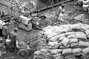 6月26日,抢险人员正在运送抢险物资进入事故现场。 6月25日17时,位于上海市四平路、天水路路口的轨道交通10号线5.1标溧阳路—曲阳路区间隧道下行线盾构推进时,在洞圈翻板发生渗水漏砂,附近地面出现局部沉降。险情发生后,上海有关方面立即启动应急预案,组织力量实施抢险。当晚22时,险情得到初步控制。 新华社发
