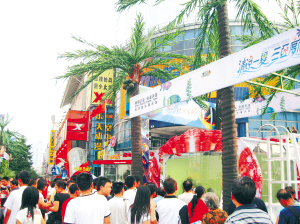 | 长沙街头搭建的“三亚风情街”引来众多星城市民。 本报记者 张谯星 摄 |