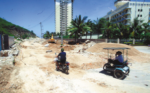 2005年3月,计划总投资近3亿元的鹿回头海景大道开始动工,总长约10公里,项目资金来源为国债资金、国家开发银行贷款和地方财政。由于拆迁安置等问题,工程进度非常缓慢。2005年底,仅仅完成200米长的广场道路建设,成为停滞不前的“半拉子路”。