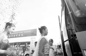 | 三亚旅游大篷车从美丽之冠出发。 本报记者 程范淦 摄 |