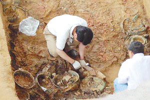 首先,从圆形墓坑和墓底埋葬布局,有专家认为,该墓葬与古史中记载极少的钟离古国有关。