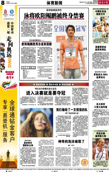 海南日报 体育新闻 008 2008-06-281 2008年06月28日 星期六