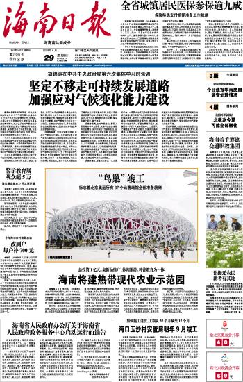 海南日报 头版 001 2008-06-291 2008年06月29日 星期日