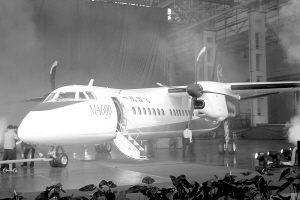 | 6月29日,我国自行研制的新型涡桨支线客机新舟600,在中国第一航空工业集团公司西安飞机公司总装下线。新舟600在新舟60基础上进行了多项改进。 新华社记者 张毅 摄 |