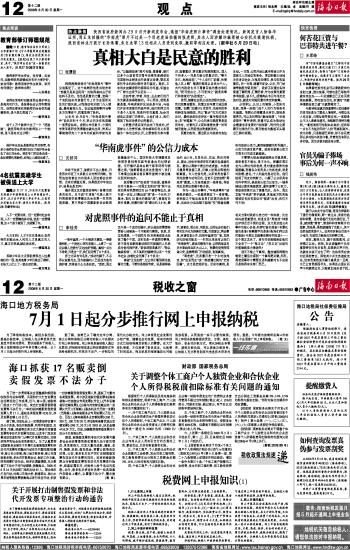 海南日报 观点 012 2008-06-301 2008年06月30日 星期一