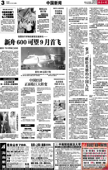 海南日报 中国新闻 003 2008-06-301 2008年06月30日 星期一