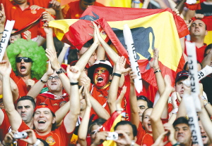 | 西班牙队球迷在欢呼胜利。 新华社发 |