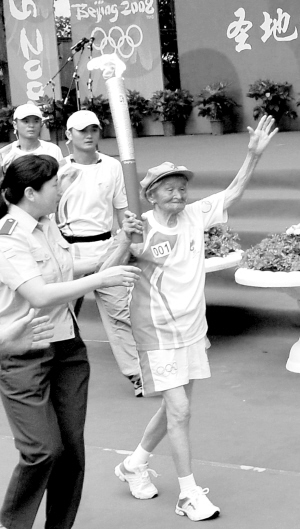 刘天佑老人出生于1916年,四川巴州人,是目前延安健在的两位女红军之一。她1935年跟随部队开始长征,1937年初到达延安。如今,92岁的她成为了这次陕西省年龄最大的奥运火炬手。
