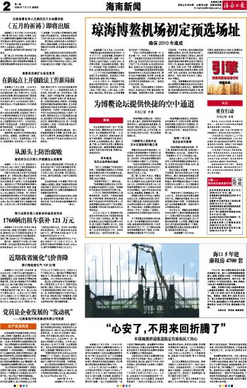 海南日报 海南新闻 002 2008-07-031 2008年07月03日 星期四