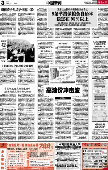 海南日报 中国新闻 003 2008-07-031 2008年07月03日 星期四