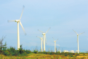 | 海南海岸线长,近海面积大,开发利用风能有得天独厚的条件。图为东方风电厂。 本报记者 张杰 摄 |